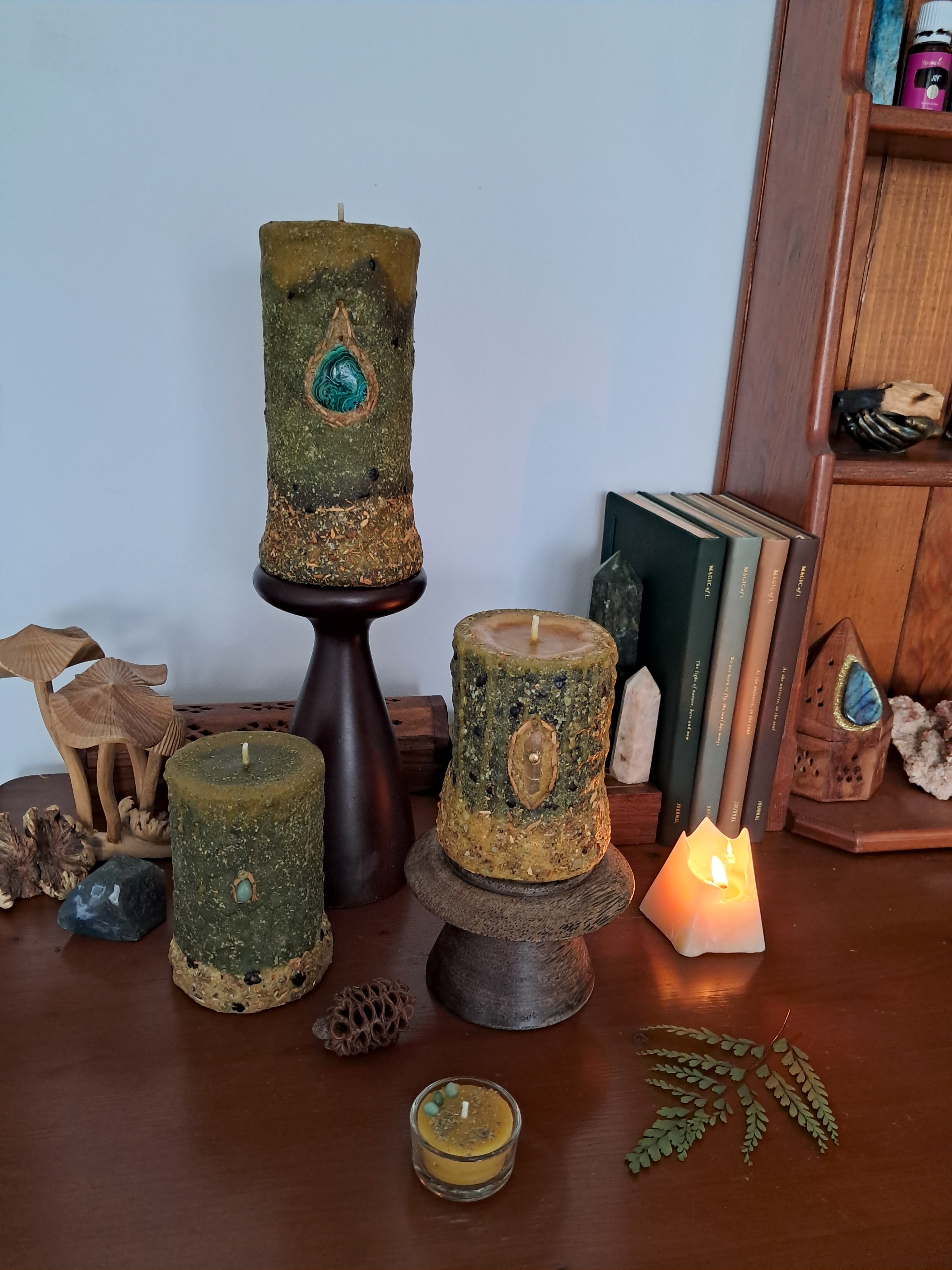 Each candle is slow-crafted in small batches using pure Australian beeswax, organic herbs, flowers, and sacred resins.