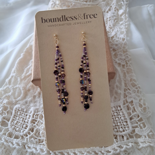 'Velvet Spell' 3 Strand Beaded Earrings | One-of-a-kind