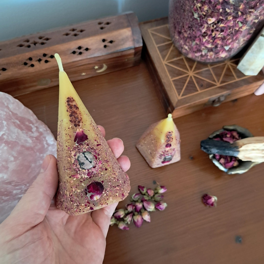 Small Pyramid Beeswax Candle ♡ Sacred Rose