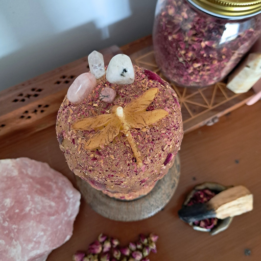 Large Dragonfly Beeswax Candle with Gemstones ♡ Sacred Rose