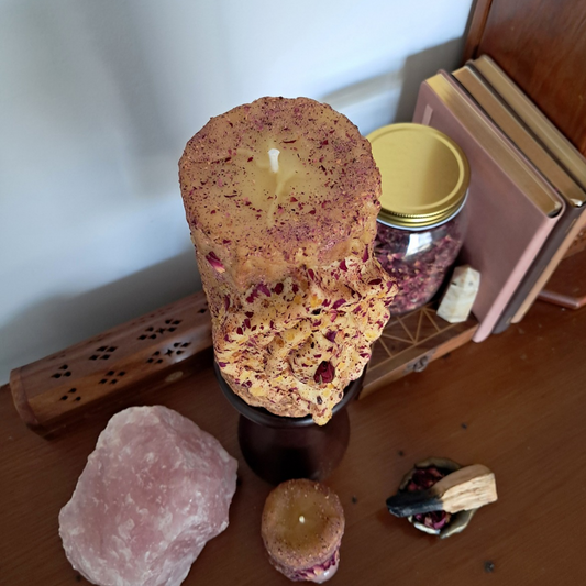 Small Rose Petal Beeswax Candle ♡ Sacred Rose