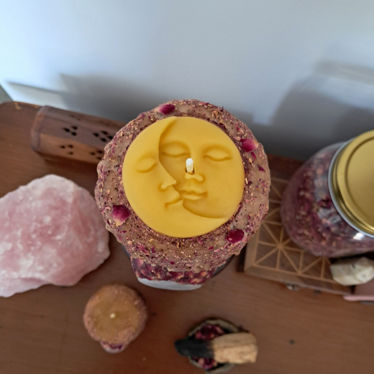 Sun/Moon Beeswax Candle with Rainbow Moonstone (15 x 8cm) ♡ Sacred Rose