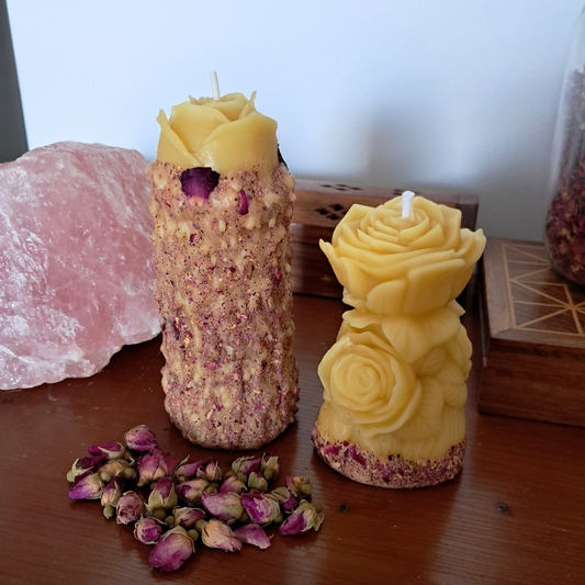 Set of 2 Beeswax Rose Candles ♡ Sacred Rose